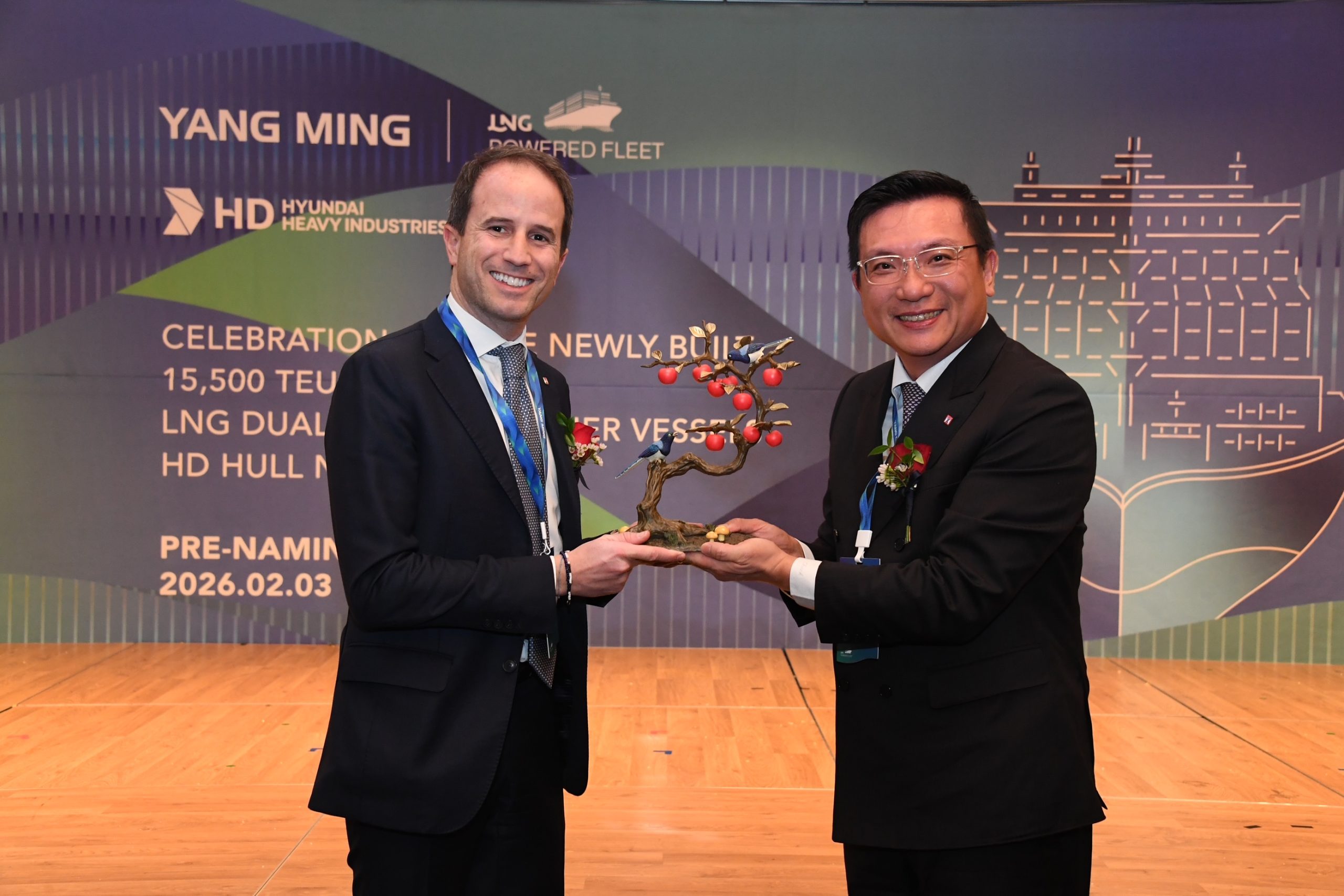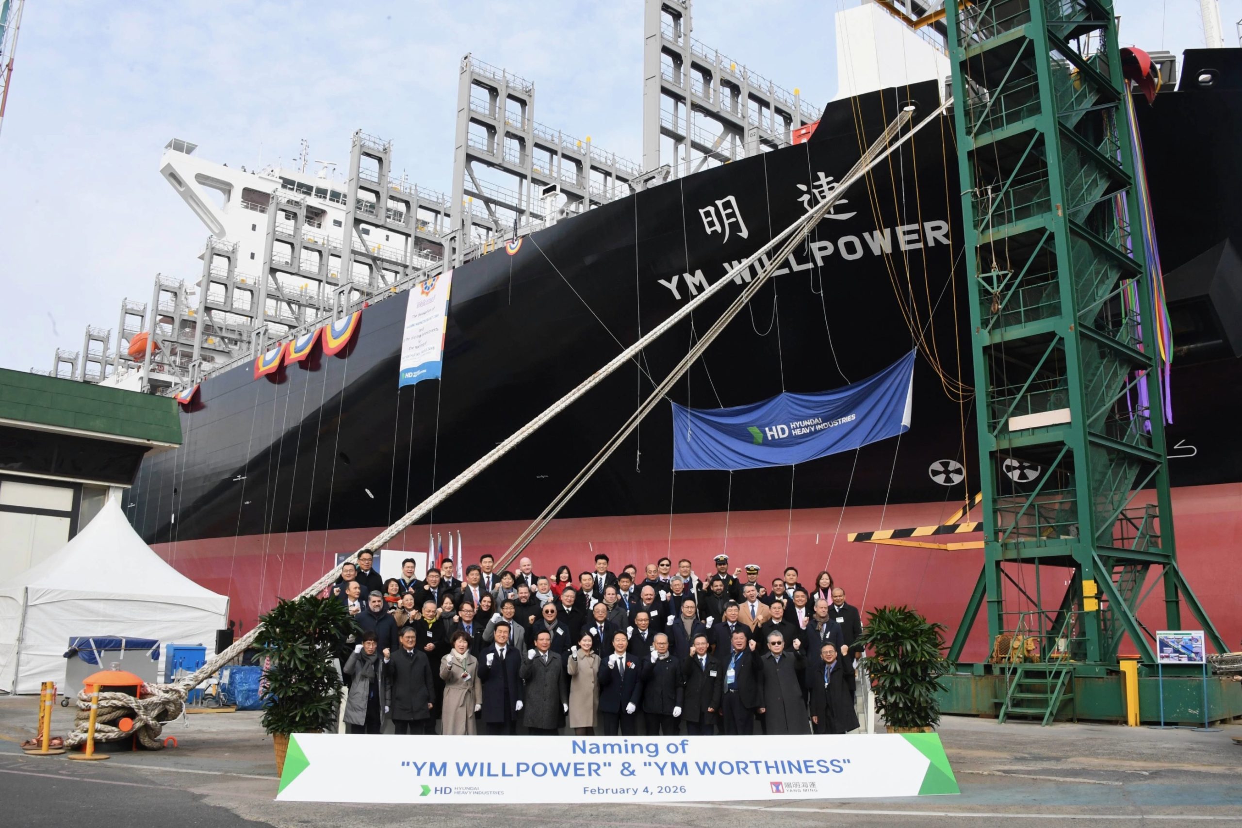 Il Chief Commercial Officer del Gruppo Finsea, Massimo Marzani, insieme al nostro Amministratore Delegato, Aldo Negri, su invito dell’armatore Yang Ming, hanno partecipato alle cerimonie di battesimo delle navi YM Willpower e YM Worthiness, che si sono svolte presso il cantiere navale HD Hyundai Heavy Industries di Ulsan, in Corea del Sud.